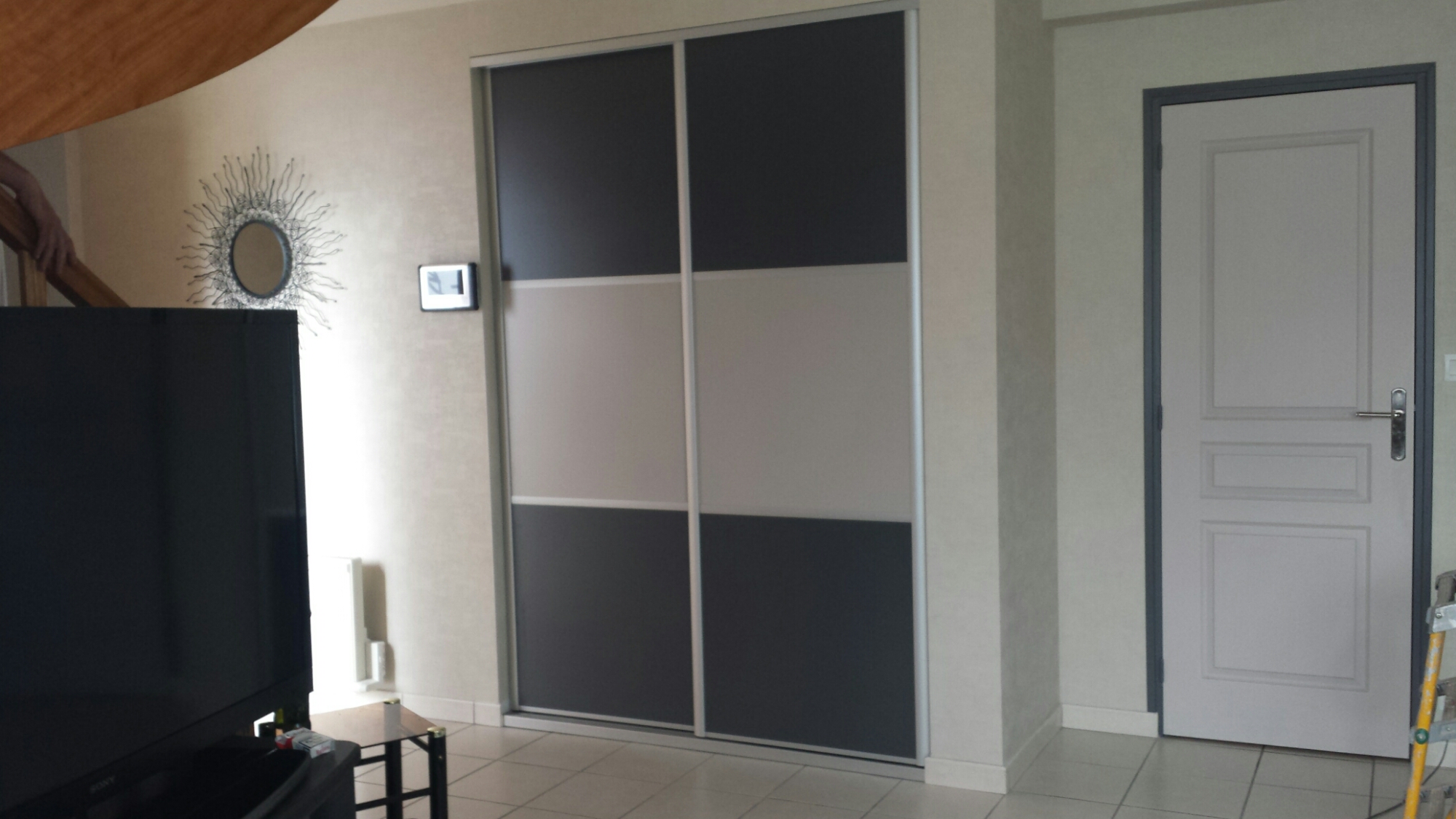 Les clients nous ont sollicité pour la fourniture et pose d’une porte de placard coulissante dans leur entrée.