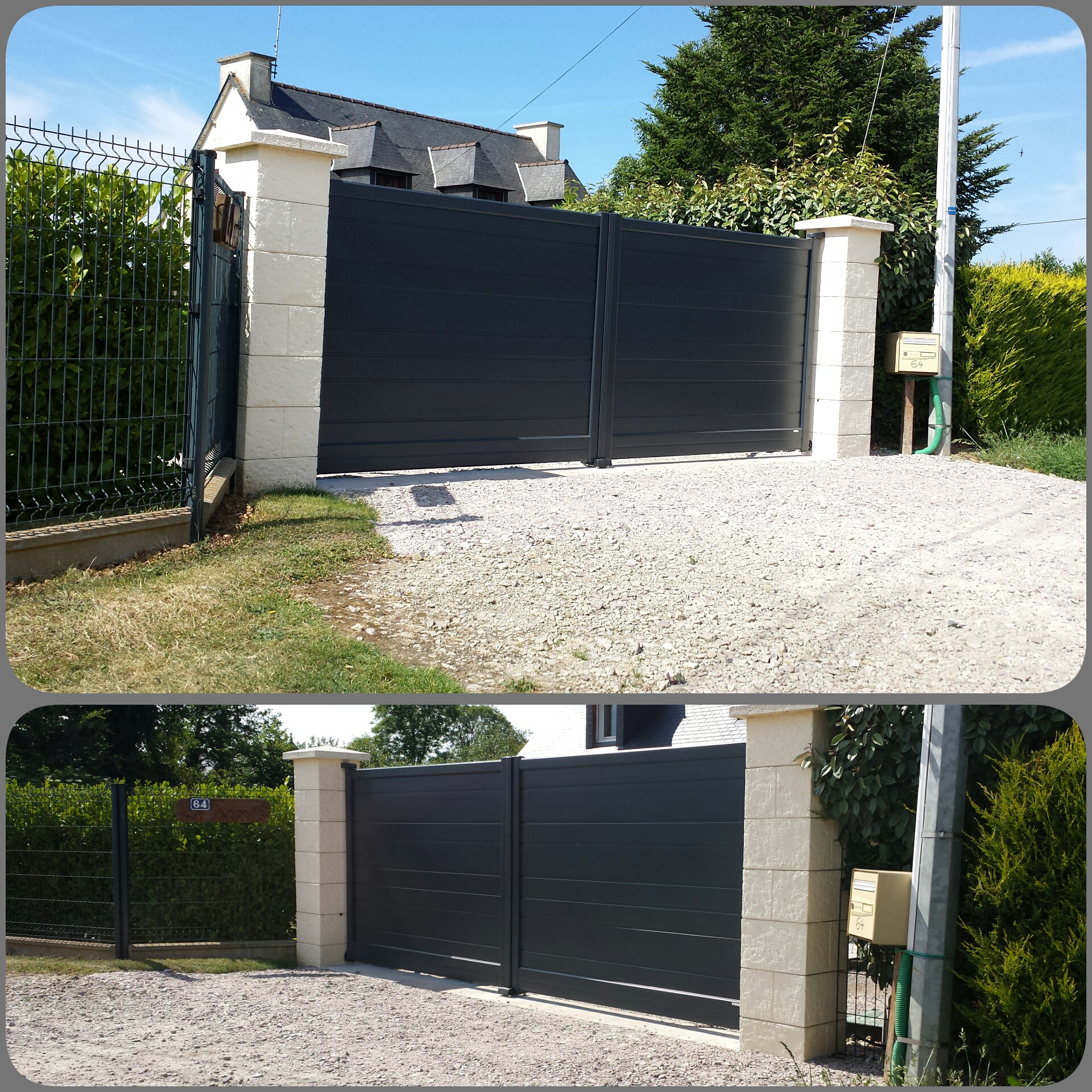 Pose d’un portail de clôture en Aluminium ral 7016, dans une propriété situé à Saint Pabu, Erquy 22430