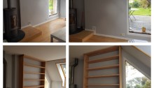Fabrication et pose d’une bibliothèque en chêne massif, made in France. TRAVAUX RÉALISÉS SUR LA COMMUNE DE ERQUY 22430 PAR L’ENTREPRISE MENUISERIE CARDIN-BLIVET ERQUY //COETMIEUX