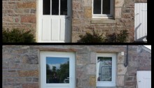 Remplacement d’anciennes menuiseries bois, par des nouvelles à l’identique en Pvc blanc avec petits bois incorporés dans le double vitrage. Travaux réalisés par la Menuiserie Cardin-Blivet ERQUY/COETMIEUX