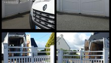 Remplacement d’un portail de clôtures en bois par un autre modèle en PVC. Chantier réalisé à Pléneuf val André 22370. En partenariat avec Vendôme fermetures.